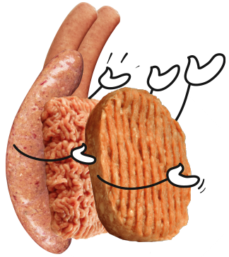 A hybrid product looks like meat, tastes like meat and offers the same bite as meat, but is not 100% meat: it is a combination of meat and mushrooms. This combination creates a tasty product with both the structure and taste of meat. Our hybrid product range already includes hamburgers, bratwurst and chipolata sausages, and minced meat.